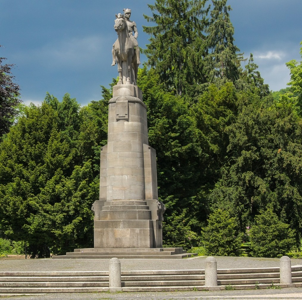 Under 30-åriga kriget plundrade svenska trupper Prag och lade vantarna på den över 1000 år gamla Codex argenteus, Silverbibeln. Den präntades på det numera utdöda gotiska språket vid Teoderik den stores hov, som står staty på bilden. Stormaktidens svenskar ville gärna se sig som de mäktiga goternas anfäder och Magnus de la Gardie donerade boken till Uppsala universitet. Där kan man, trots ett djärvt stöldförsök, fortfarande beskåda den bakom pansarglas.