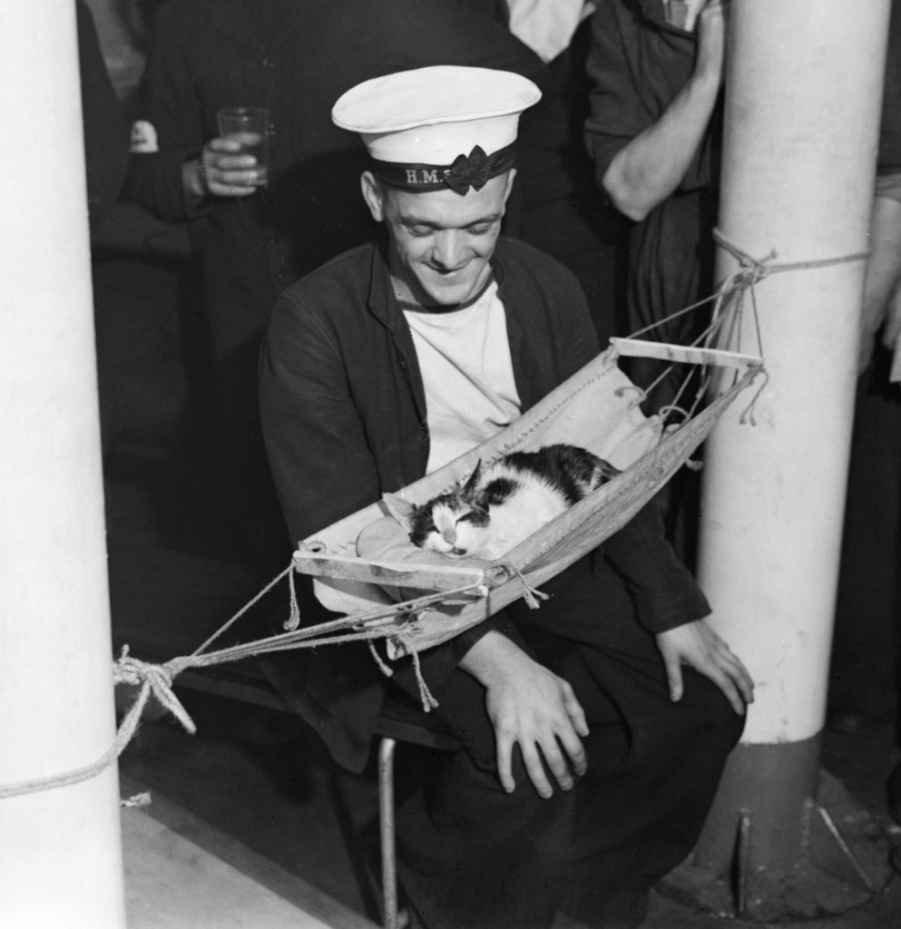 Winstons Churchills har liknats vid ett lejon för sin sega kamp mot Nazityskland men vad som inte är lika känt är att han älskade missar som gav honom tröst och stöd under krigsåren. Andra brittiska katter genomled tyskarnas bombardemang av sitt hemland eller tjänstgjorde som skeppskatter på brittiska krigsfartyg. Katten på bilden heter Convoy och gick under tillsammans med besättningen när hans skepp sänktes av nazisterna.